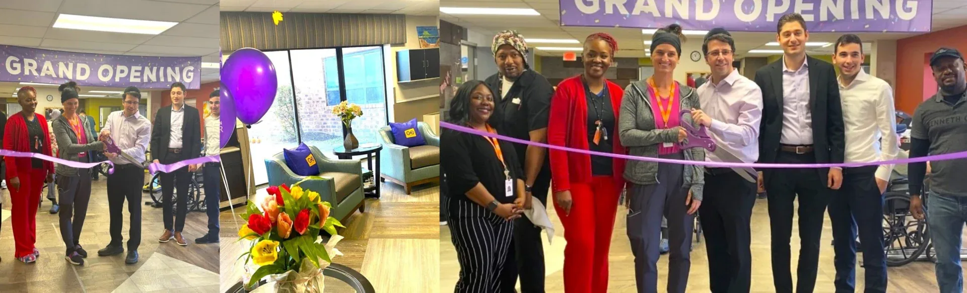 Yesterday at Hammonton Center in Hammonton, New Jersey, the 240-bed skilled nursing facility introduced the GO Program with a ribbon-cutting ceremony. This is an incentivized initiative that is geared towards short-term residents who will be taking advantage of the rehabilitation therapy that the facility has to offer, but in a very comfortable setting. GO stands for “Good Outcomes” and this program is meant to incentivize the residents with many kinds of “at home” luxuries such as having access to Netflix and tasty Wawa Coffee as a means for the residents to do well in therapy and go home quicker. Here, Hammonton Center Administrator Eli Goldman holds the ribbon-cutting scissors with Rehabilitation Director Jamie Argiropoulos, surrounded by leadership and personnel during this joyous opening.