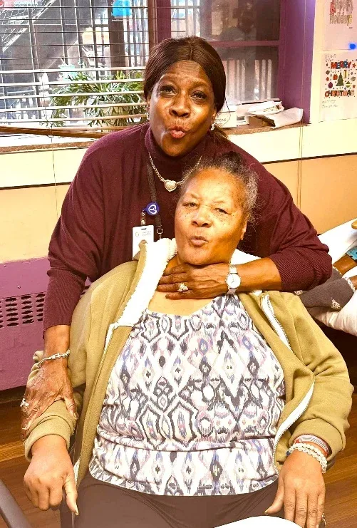 Ms. Christine Bryant, resident at University Center on Grand Avenue in the Bronx | Bronx, NY | November 20, 1943 | 80 | On November 20, 2023, staff and residents wished a big happy 80th birthday to Ms. Bryant. She is seen here with Recreation Dir. Keisha Bailey. (Mon Dec 04 2023)
