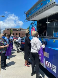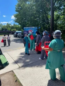 Personnel from Centers Health Care, the largest network of nursing homes and rehabilitation facilities in the northeast which includes the Martine Center in White Plains and the three Northern facilities in Rockland County in Monsey, Nanuet and Haverstraw, came out to thank and treat the frontline healthcare workers at Westchester Medical Center in Valhalla with a donut truck on a beautiful June 15 morning. This heartfelt gesture hit the spot and satisfied the sweet tooth of nurses, physicians and non-clinical staff so to brighten their day. Centers staff also educated the hospital staff with new literature on some of the cutting edge services Centers Health Care is offering this year, the company’s 25th year of existence. The donut truck was available throughout the morning capturing.