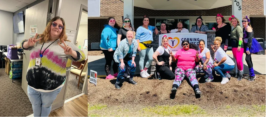 This week being National Nursing Home Week, Corning Center in Corning, New York, did a decades-theme this week as the staff entertained their residents with dressing up for every decade from the 1960s to the present. At the 120-bed skilled nursing facility on East First Street, the building was flooded with tie-dye shirts, Madonna look-alikes, leggings and all kinds of bright colors. Recreation Director Shannon Robertson says that this theme appeals to everyone, “it’s a blast revisiting the past decades and being able to relive our youth by getting away with wearing familiar clothing from our younger years.” National Nursing Home is all this week, May 15 through the 20th.
