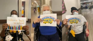 On September 7th at Deptford Center in Deptford, New Jersey, residents at the large 240-bed nursing and rehabilitation facility, wished the children and young adults good luck this year in school as the kids returned to in-school classroom education.