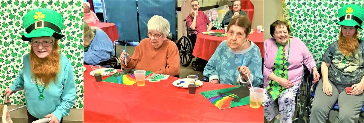 St. Patrick’s Day was a lot of fun at Glens Falls Center in Glens Falls, New York, as many of the residents and staff dressed like leprechauns, and the Recreation Department, led by Director Laura Duell, had a lucky green paint n’ sip event that many of the residents took part in.