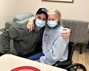 Ballston Spa’s David Helwig was recently able to visit his 80-year-old mother Florence Goyer, a resident at Washington Center for Rehabilitation and Nursing in Argyle, N.Y. David hasn’t been able to visit his mother in more than a year due to COVID-19. Washington Center recently reopened for visitation based on the new New York State Department of Health guidelines.
