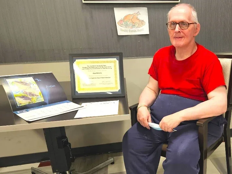 Alan Malanik | In June, NY State notified Mr. Malanik that he was 1 of 13 winners of 2024’s “Art of the Heart” statewide contest. | Alan in from Boro Park Center in Brooklyn and on Nov. 21, 2023, he received his certificate and 2024 calendar. (Mon Nov 27 2023)