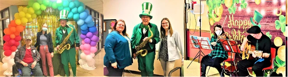 The Warren Center in Queensbury, New York, had a lot of live musical entertainment happening this St. Patrick’s Day as the fun and famous ever-changing holiday saxophonist from the Adirondacks, Luke McNamee, a.k.a. Paddy O’Sax during this time of year, came to play everyone’s favorite lucky Irish tunes. The residents loved every minute of it. Additionally, the 80-bed skilled nursing facility also featured the gorgeous violin strings of the Round Lake Heartstrings from Round Lake, NY, of course. It’s St. Patrick’s Day, so the “Danny Boy” ballad is always a favorite of the residents.