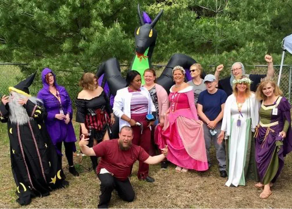 Medieval Week began May 23rd at Warren Center in Queensbury with staff dressed like kings and queens, plus wizards, dragons, owls, and a tasty pig roast to top it all off. There were sword races, sword battles, dragon egg bowling, castle painting arts and crafts, and last but certainly not least, the Adirondack Axe Throwing folks showed up and taught the staff how to hit the target. Since it’s really 2022, the staff at the 80-bed skilled nursing facility were very careful not to act like Game of Thrones and stay alive. Holly from Recreation arranged everything, which was a great morale booster.