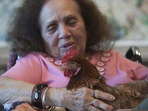 “I grew up in the city, Wilmington, Delaware,” said the elderly Nesbit, sitting in a wheelchair at the facility. “That’s the first time in my life I ever came near a chicken or anything. I never thought I would ever do that. I loved it. She’s so calm and so soft. Sometimes you’re kind of standoffish because you’re scared. I’m going to call my daughter and tell her what I did. She’ll be happy for me.”