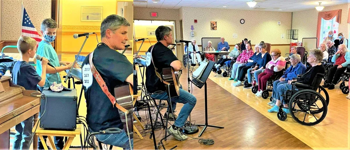 On January 30, well-known local Bath, New York, musician and vocalist Brad Ordway wowed the residents and staff at Steuben Center when he and his kids performed a number of patriotic songs, including Woody Guthrie’s “This Land Is Your Land”. What a great show it was at the 105-bed skilled nursing facility as nearly 25–30 residents and staff all joined in and sang with Brad and his little ones. Brad’s mother, 93-year-old Rosamond, is one of the residents there, and the facility loves when Brad plays. Brad, a physical education teacher at the middle school in the Bath Central School District, and his kids have played many times in public before, especially when they did a great holiday show back in December at the Dorman Library. Steuben Center cannot wait to have Brad and his kids back again.