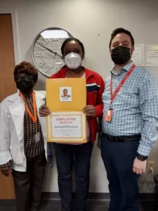 Congratulations to Northern Riverview’s December Employee of the Month, Marie Sherly Marcelin, R.N. (Registered Nurse)! Sherly, known by many, came to the large 180-bed nursing and rehabilitation center in Haverstraw eight years ago as a hard-working L.P.N. (Licensed Practical Nurse) with an uncanny ability to relate to patients. Her dedication and strong interpersonal skills paid off, Sherly is an accomplished R.N. and Unit Nurse Manager. Having an amazing drive and work ethic, Sherly is a go-to team player, and is always accessible to both patients and staff. “We love Sherly and Northern Riverview is fortunate to have her as part of our team,” said Lori Silverstein, Recreation Director. “We wish her continued success!”