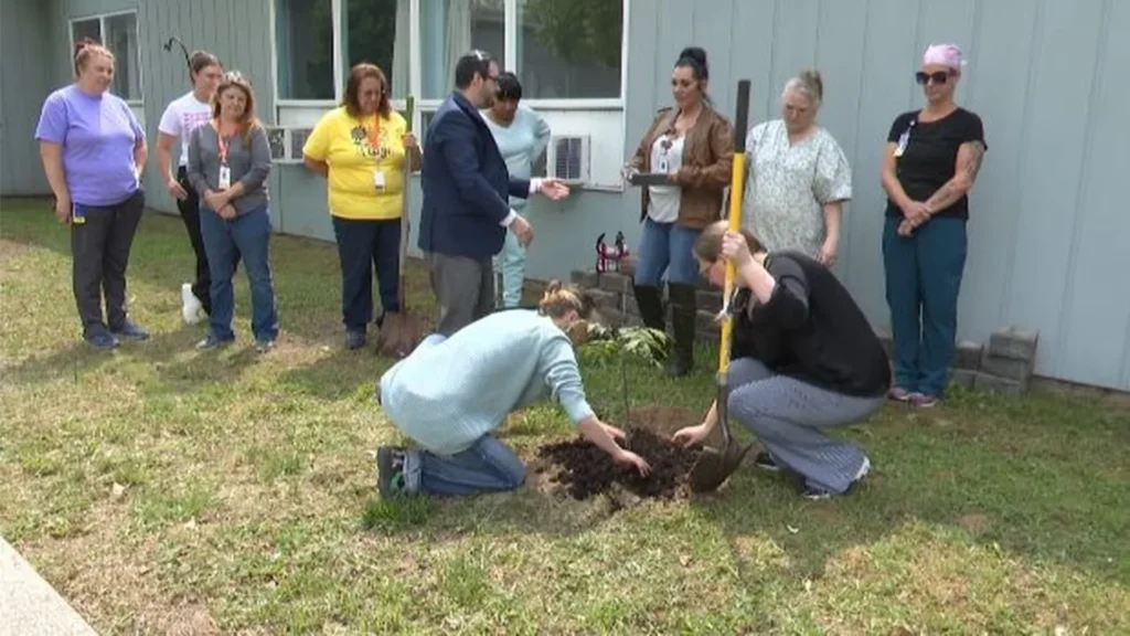 The 2 trees were planted Friday in the courtyard of Carthage Center for Rehabilitation and Nursing on West Street.