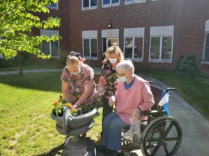 The weather turned beautiful just in time for Steuben Center’s annual Memorial Day Flower Planting event. Every year, residents at the 105-bed nursing and rehabilitation facility in Bath, New York, would plant flowers and fill flower bed boxes for all to see, residents, staff and families alike. The residents love planting and the feeling of spring is rebirth, especially in 2021. From left to right are Tina Simpson Activities aide, Norma Fox activities aide and resident Ruth Stopka.