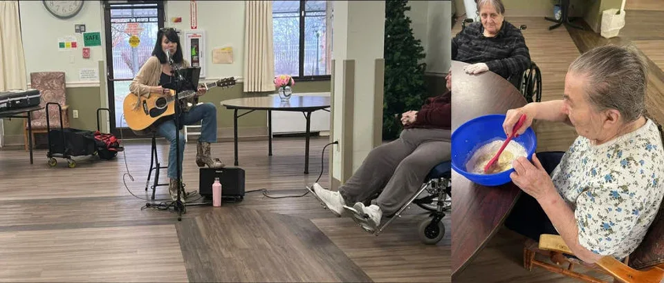 The Recreation Department at Slate Valley Center in Granville, New York, started the residents off right to begin 2023 with a live performance of the always magical vocalist and guitarist Laura Collins. Ms. Collins loves playing the soothing sounds of country music, pop, and bluegrass for the residents. The residents were ready to bake delicious homemade cake donuts after her performance. Perfect for a cold winter’s day.