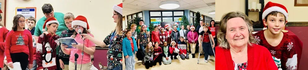 On Tuesday, December 5, residents and staff at Warren Center in Queensbury, New York, were brought some holiday cheer and Christmas spirit as students from a nearby private Christian elementary school, The King’s School in Corinth dropped by to sing Christmas carols and tell the story of Christmas. The residents loved the caroling, which was led by Mrs. Webster, along with a huge combined ensemble of Mrs. Diaz’s 6th-grade class, Mrs. McBride’s 5th-grade class, and Mrs. May’s 4th-grade class. All attended the special outing and what topped it all off were those famous Santa Christmas sugar cookies and the sweet holiday punch.